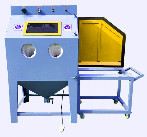 雙吊鉤式拋丸機由兩個吊鉤裝載工件交替進入拋丸清理室內(nèi)。利用拋丸器將0.2~0.8的彈丸拋向工件的表面,使得工件的表面達到相對的粗糙度,讓工件變得美觀,或者改變工件的壓應力提高壽命。本機型廣泛應用于鑄造、建筑、化工、電機、機床等行業(yè)的中、小型鑄、鍛件的表面清理或強化處理。